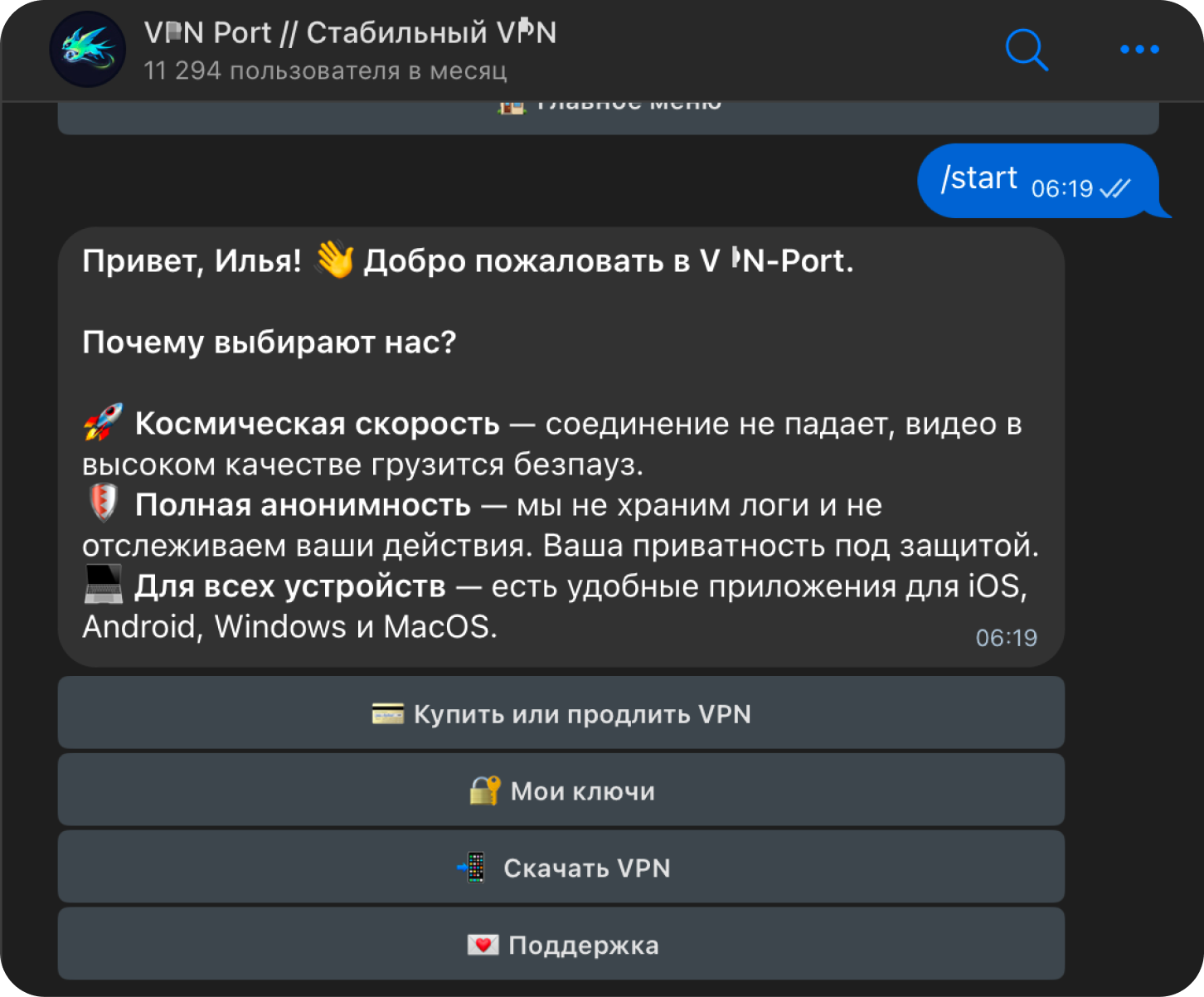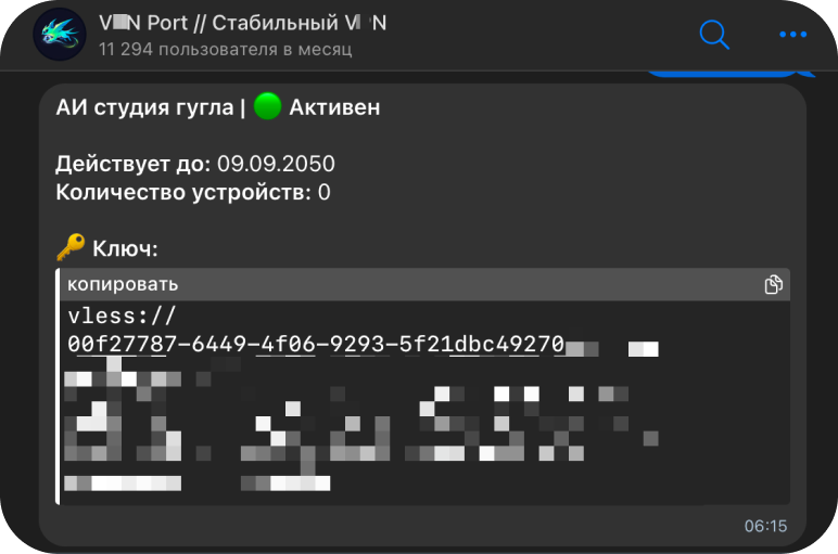 После покупки бот выдаст персональный ключ от сервера